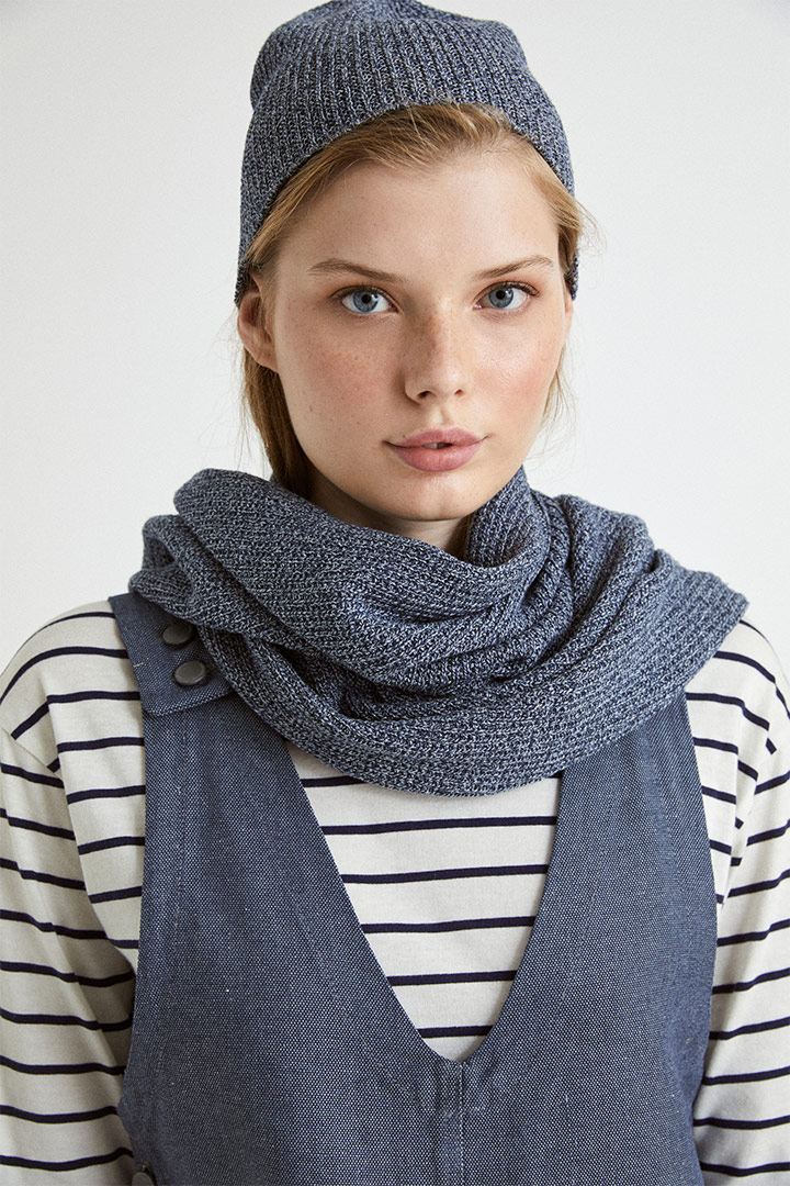 Hilo hecho con fibra de vaquero reciclado y fibra de kapok.